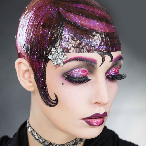 - Glitter and rhinestone make-up application.